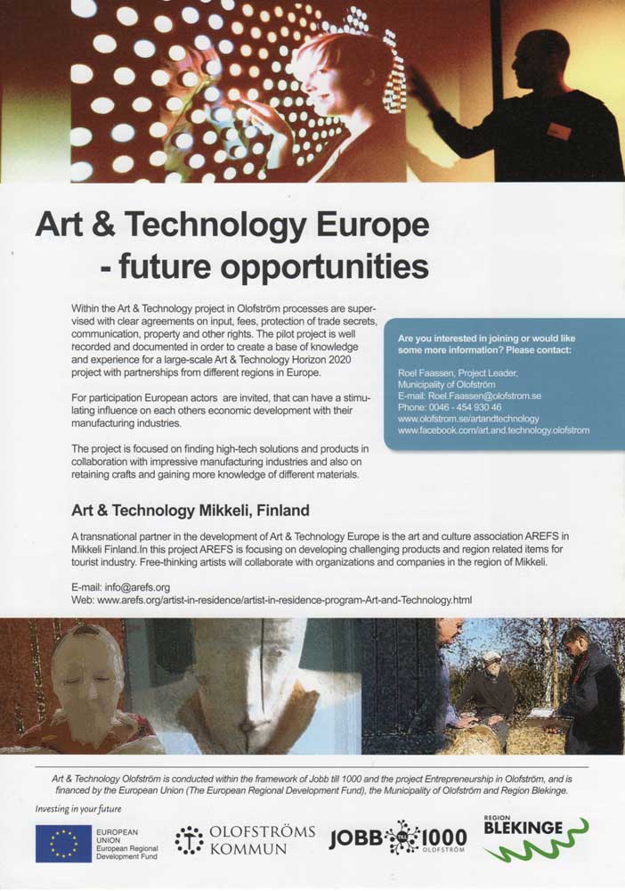 crafts and preserving or gaining more knowledge of different materials. AREFS is a transnational partner in the development of this challenging project. In Mikkeli region AREFS will develop new activities and productions in cooperation with artists, organizations and companies.