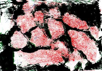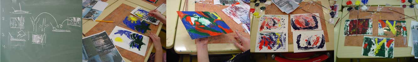 need of some results and/or effects. As the technique needs a long time of experiences to plan the available steps to build up a print it is still interesting to see how they intensively explore the new possibilities to create images. During the process the prints started to be more individual and more connected with a personal relation to the landscape. The almost unlimited possibilities of mono printing are overwhelming but through their experiences the children started to be able to plan their image even it was working out sometimes in a different way, e.g. forgotten that the print is a mirror image of the original on the acrylic glass.